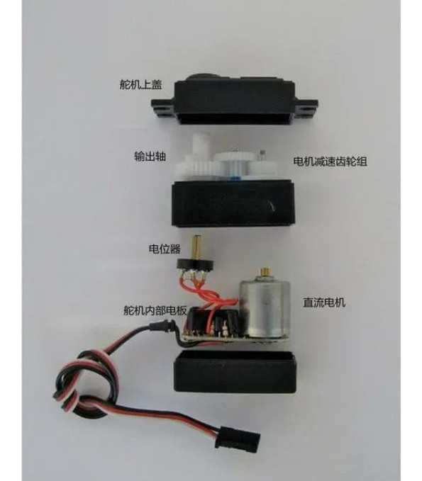 舵机并非是简单的电机,它是由直流电机减速齿轮控制电路板电位器组成的自控系统