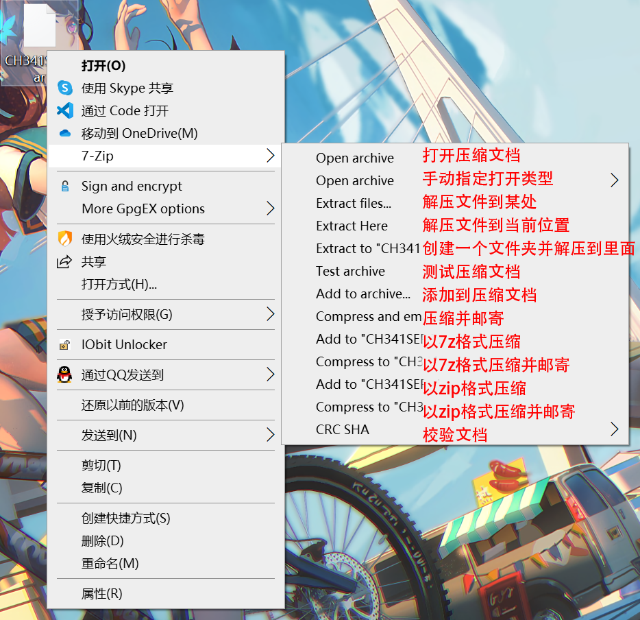 其实7-Zip无需配置可以直接使用,随意右键一个文件或文件夹,就可以通过右键菜单的7-zip选项卡进行操作