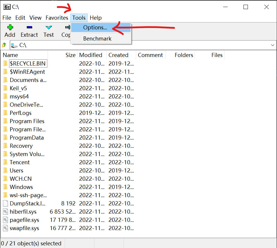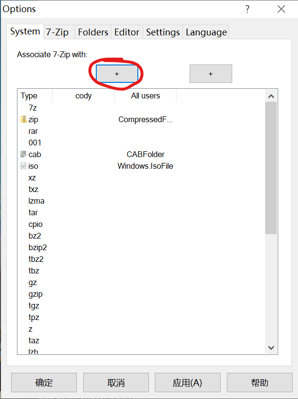7-Zip默认不关联文件后缀名称,不过可以在设置里关联支持的文件格式
