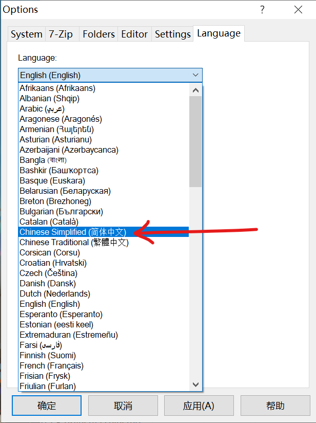 切换到Language选项卡,然后在下拉菜单中选择简体中文
