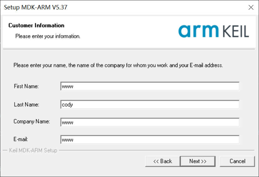 这边是选择安装位置的,上面的是Keil本身安装的位置,下面的是对应的开发板的开发套件的安装位置,设置好以后点击Next>>