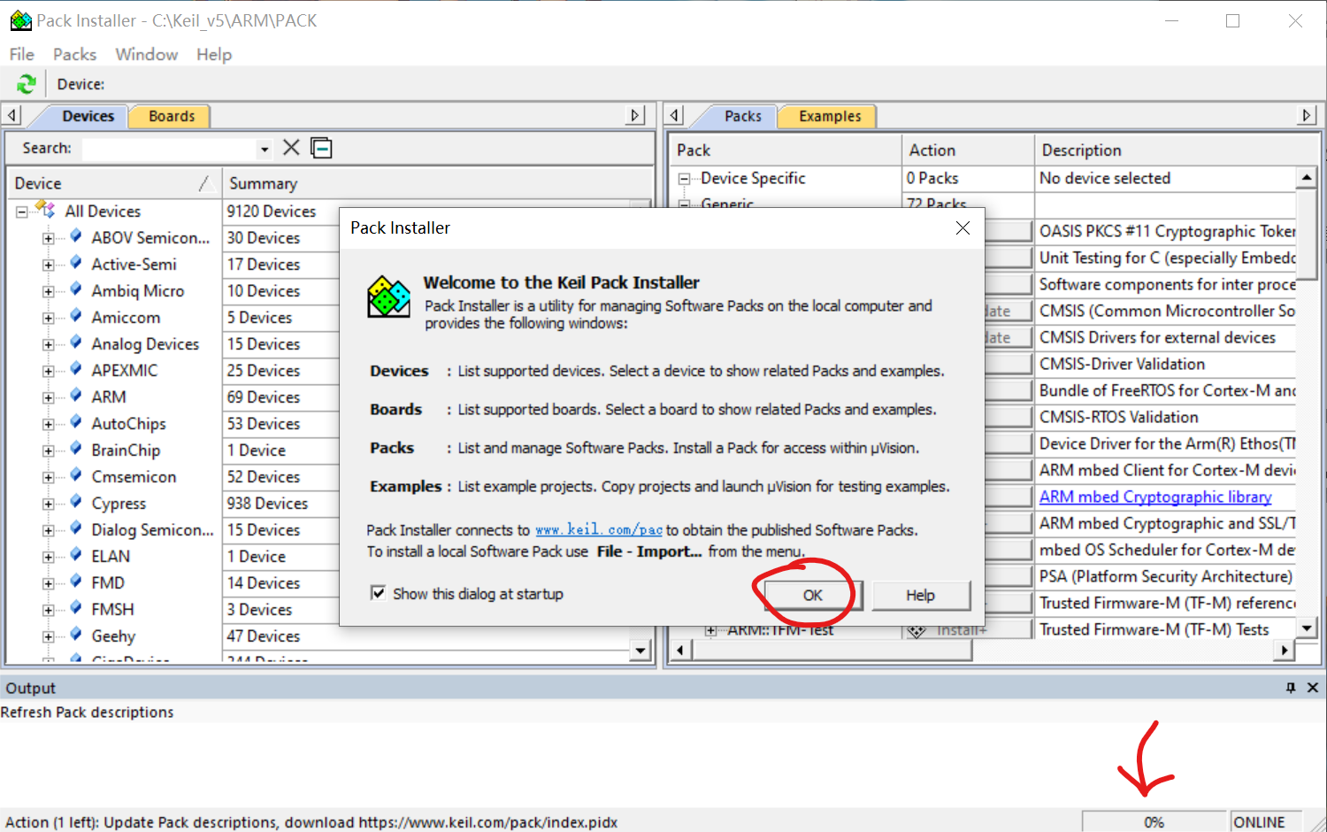 第一次运行会弹出这样一个窗口,点击一下OK,然后等待下方的进度条下载索引文件,如果太慢或者卡住说明你网络不好,请用实验室的网络