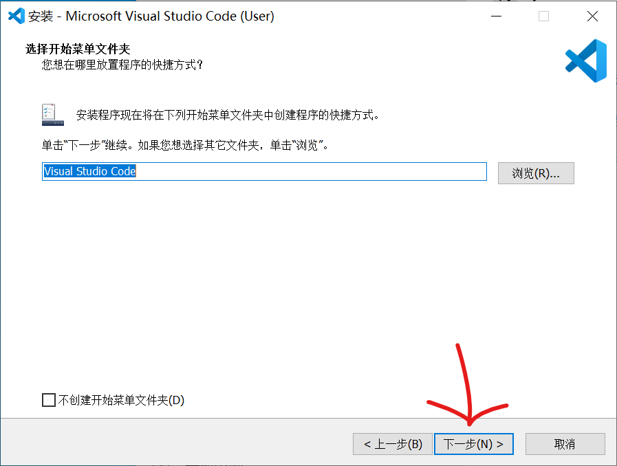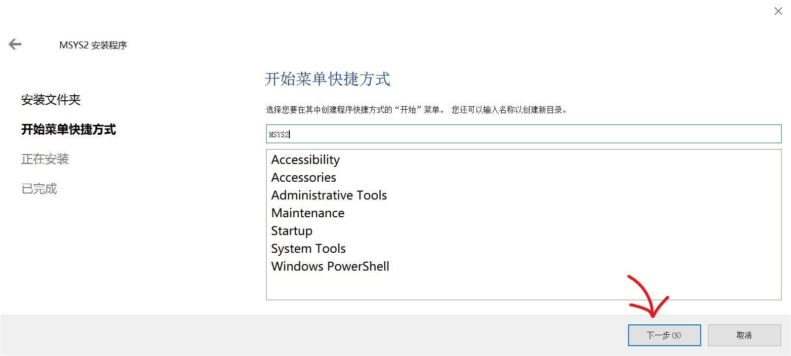 这里是开始菜单的名字,默认就好,然后点击下一步