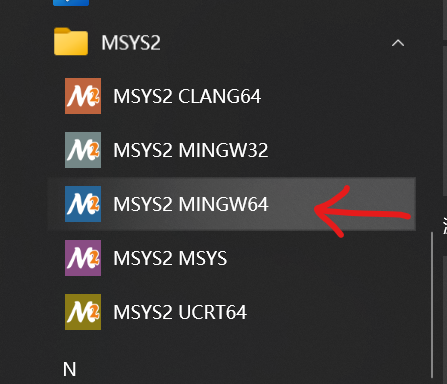 在开始菜单中找到MSYS2文件夹,然后点击MSYS2 MINGW64