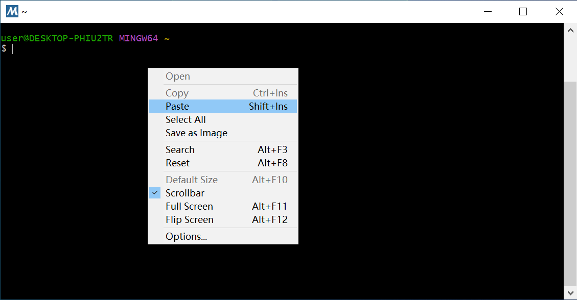 这个黑框框是不能直接粘贴的,需要右键,然后点击Paste,后面代码都不能直接用ctrl+v快捷键粘贴