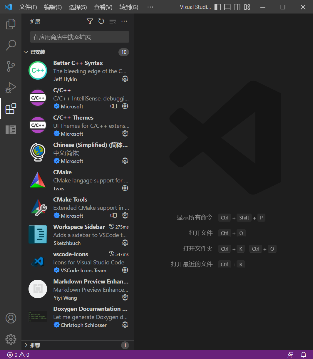 上面的表格里列出了一些写C++用得到的插件和简要描述,有些可以自行选择安装