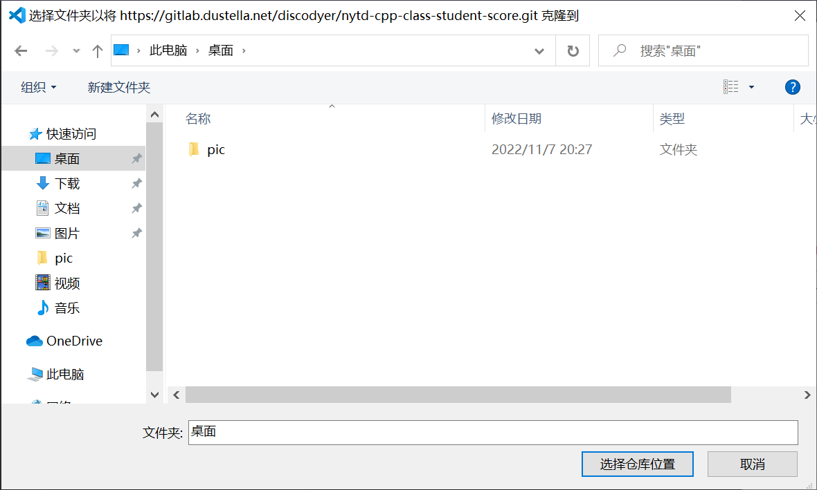 弹出的窗口是存放克隆的仓库的位置,可以创建一个专案文件夹,比如Projects,专门放各种仓库。但由于项目类型的不同,最好不要有中文的目录。比如Python程序对中文不敏感,但是C或者其他语言就可能会有问题。