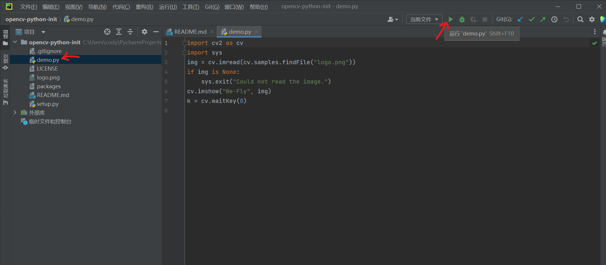 然后点击克隆仓库,将示例仓库地址粘贴进去https://github.com/We-Fly/opencv-python-init.git然后按回车