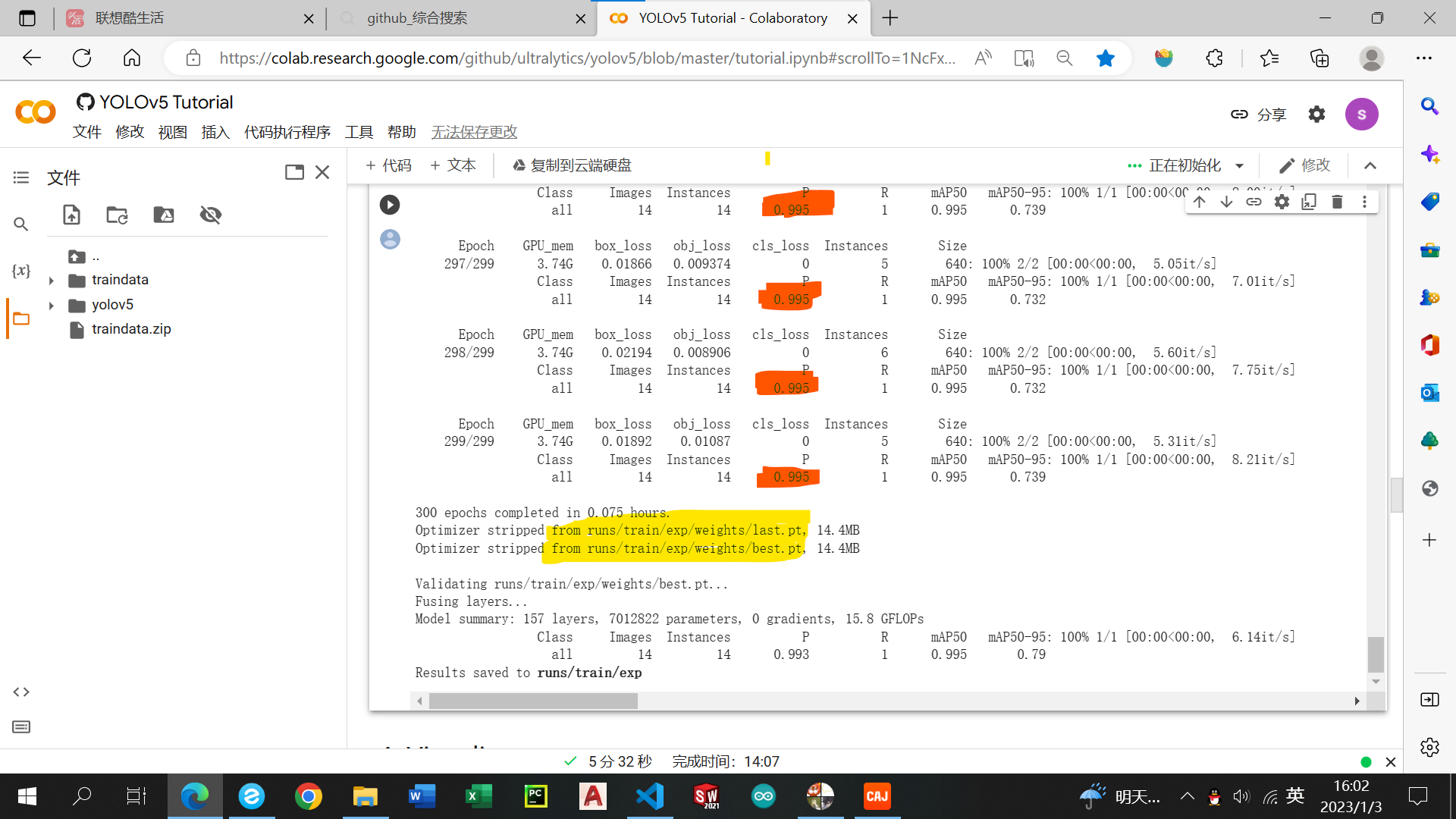 注意:可能会出现cannot find traindata.zip之类的问题报错,没有什么很好的解决办法只能刷新左侧文件页面或者主页面。