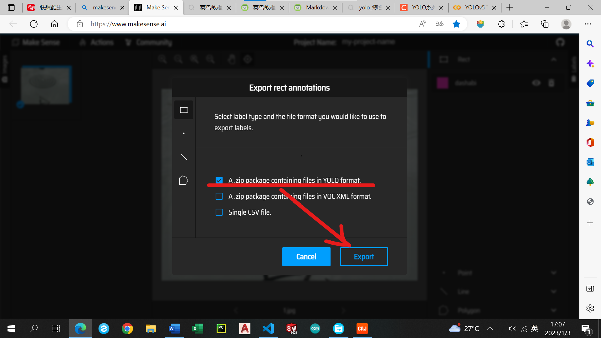 将拍摄好的照片按一定数量放入images/train和images/val中。